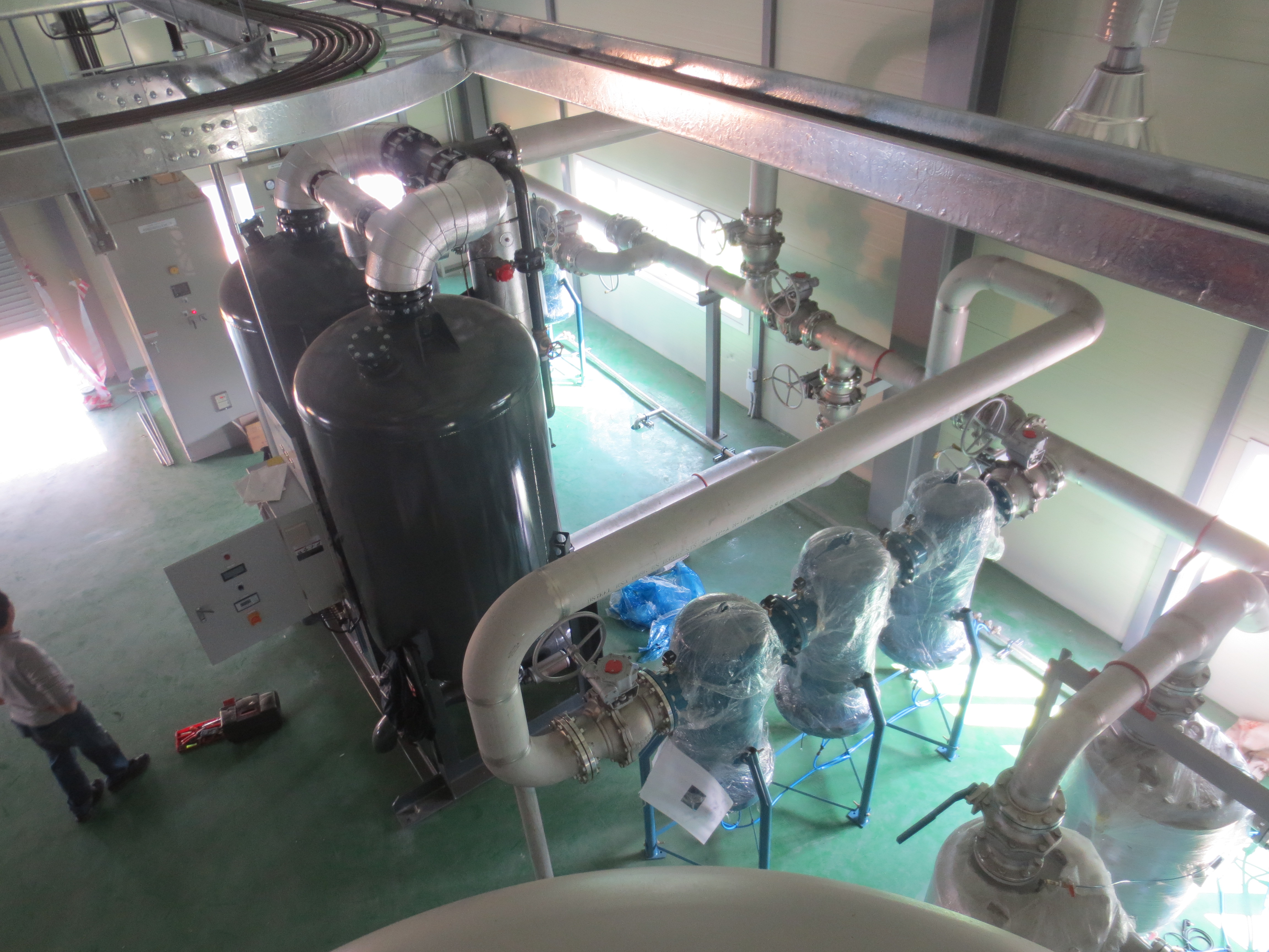 Air Compressor->Receiver Tank->Oil Zero Separator->Pre Filter->Line Filter->Coalescer Filter->Desiccant Dyer->After Filter